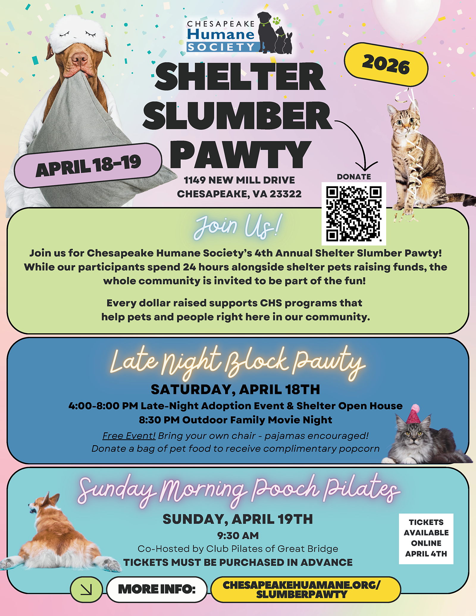 #ChesapeakeHumaneSociety #ShelterSlumberPawty2026 #adoptdontshop